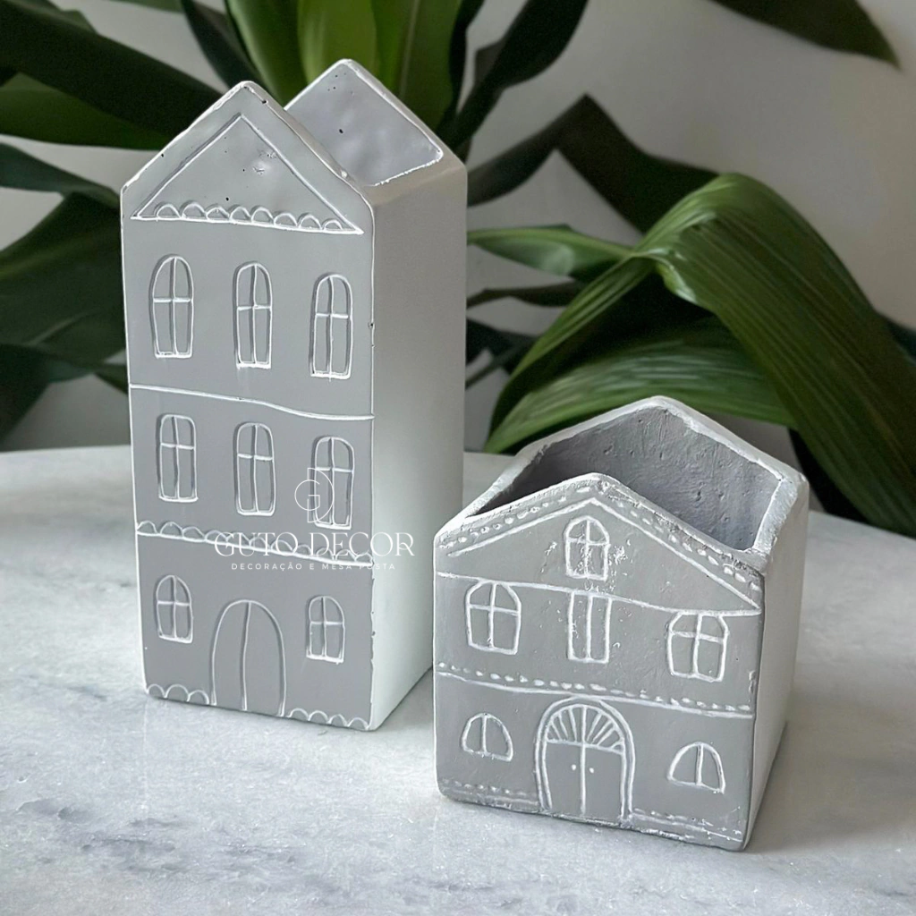 Cachepot / Porta Utensílios Casinha em Cimento 24,5cm