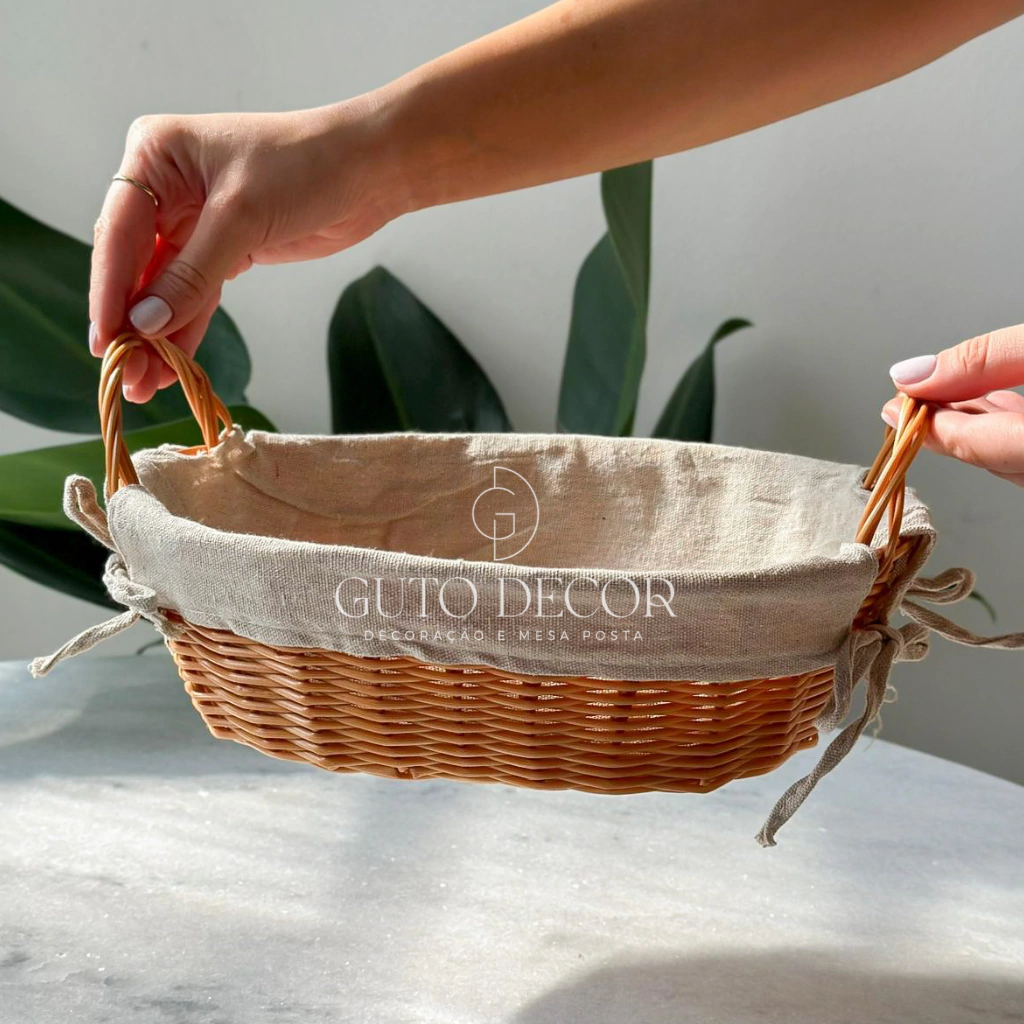 Cesto em Metal Branca com Alça em Bambu 24cm