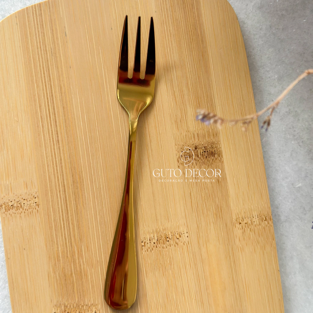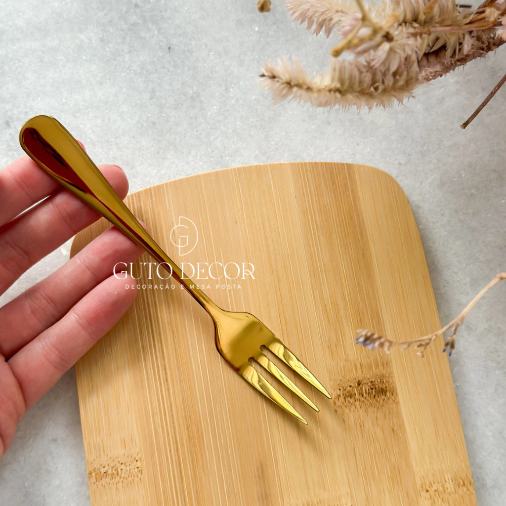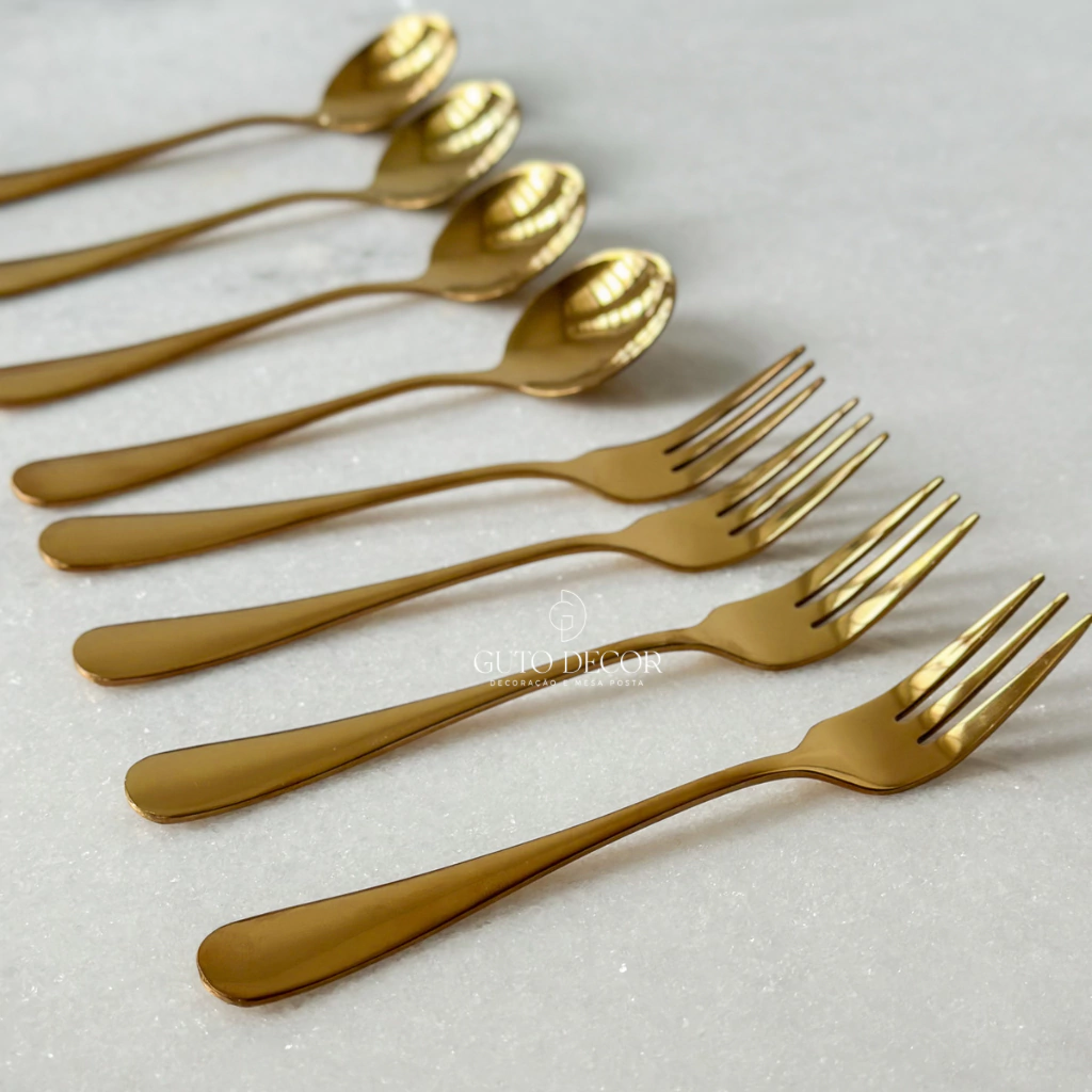 Conjunto Colheres e Garfos para Sobremesa Dourado 8 Peças em Aço Inox 13cm