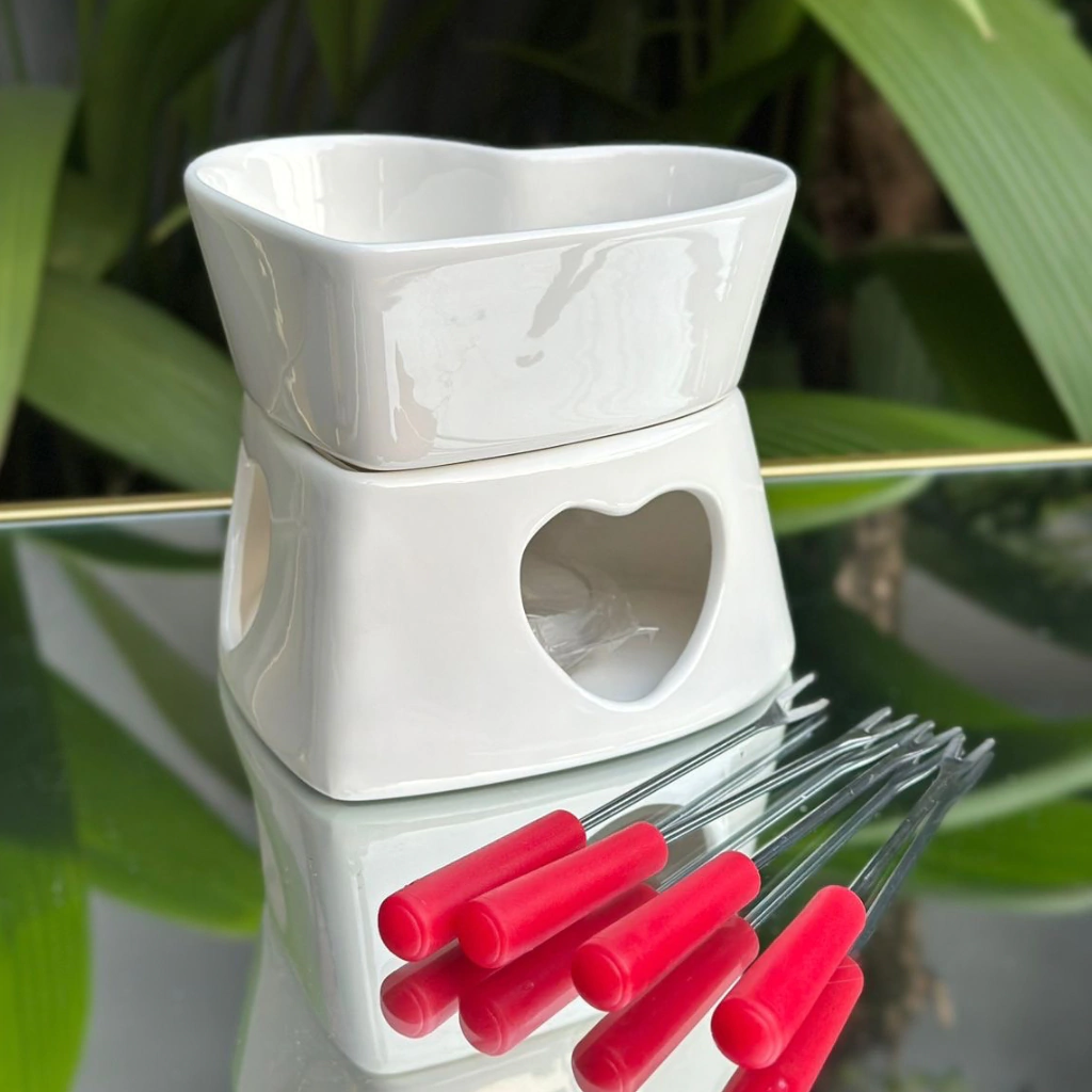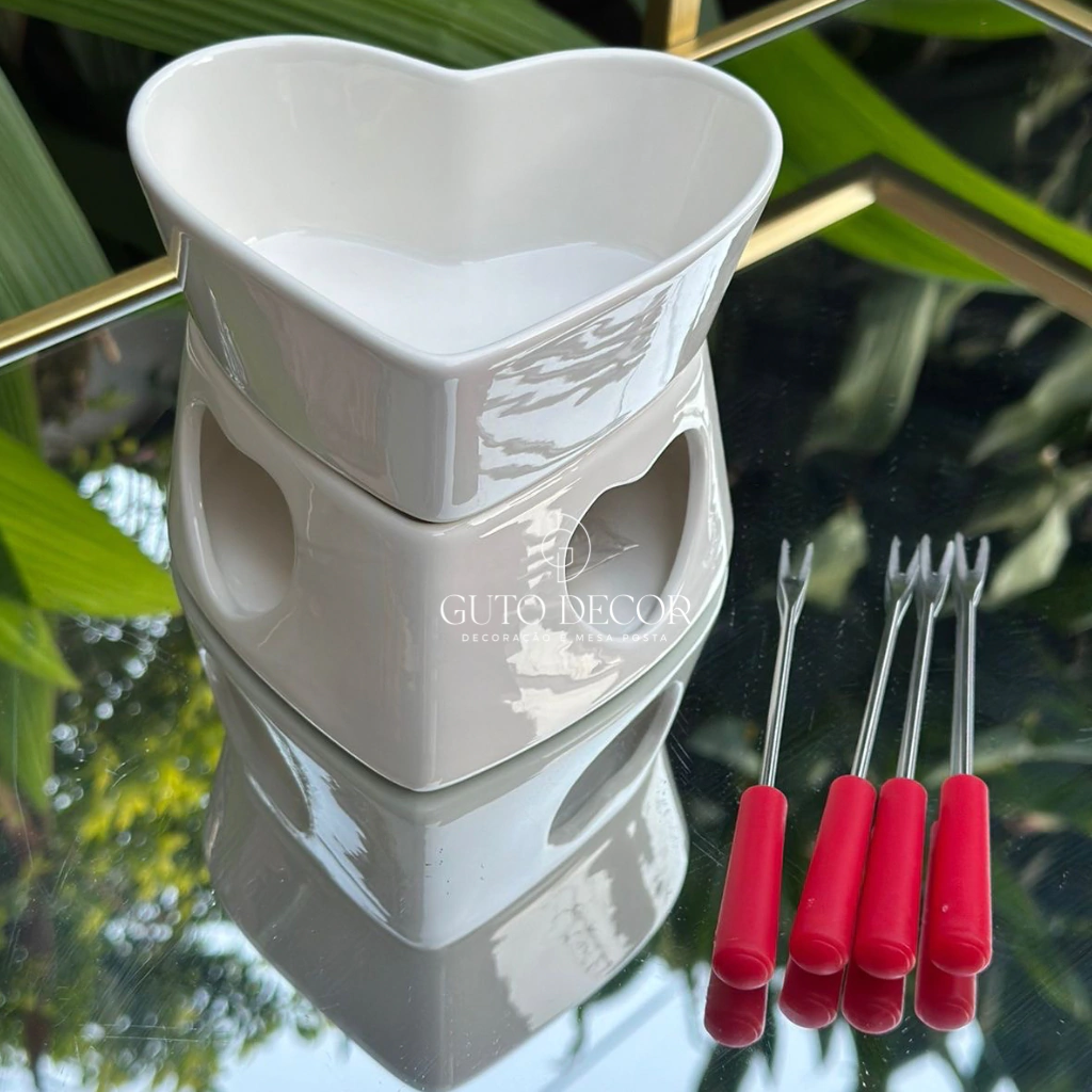 1 Bowl, 1 suporte, 4 garfos e 1 vela