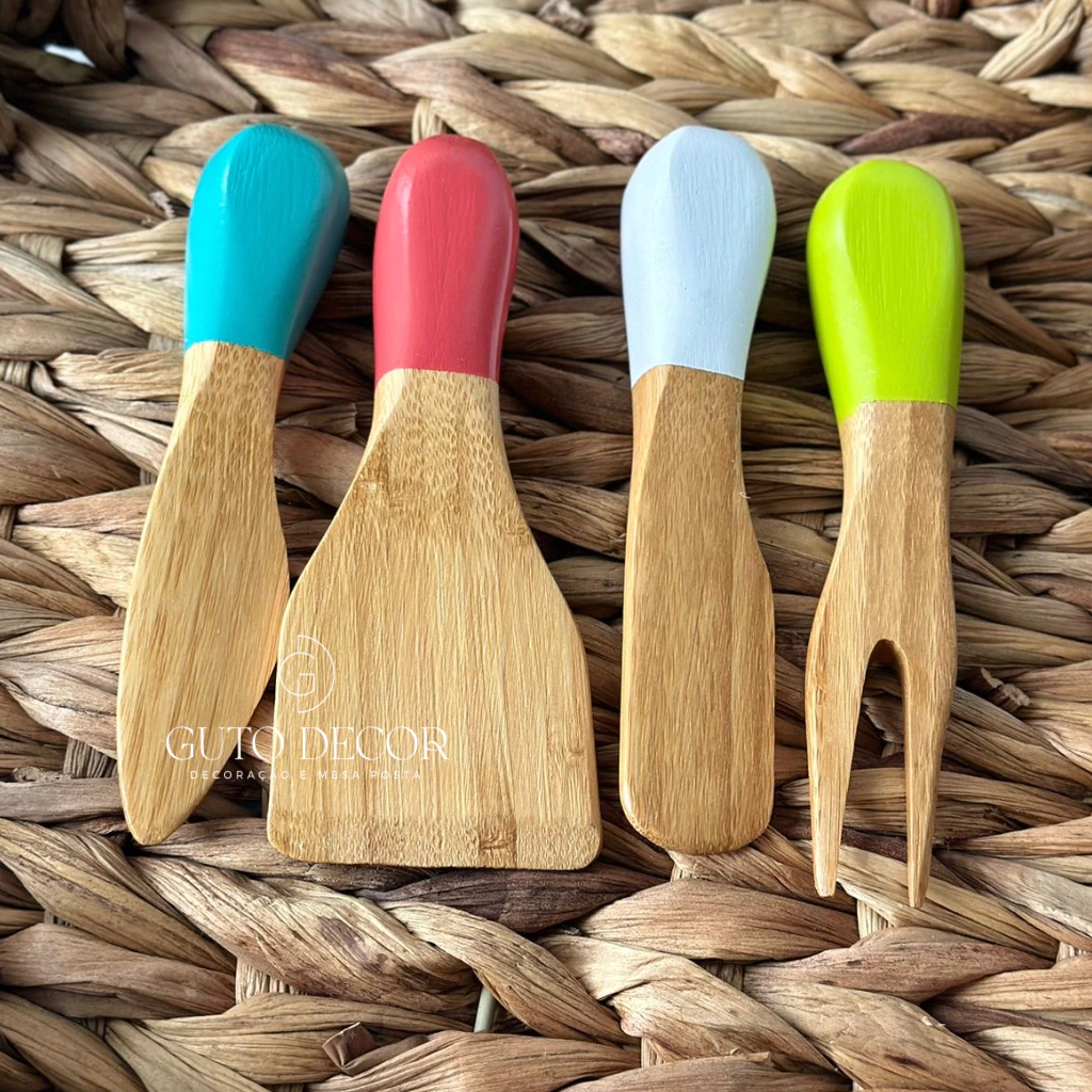 Conjunto para Queijo Colorido em Bambu 4 Peças