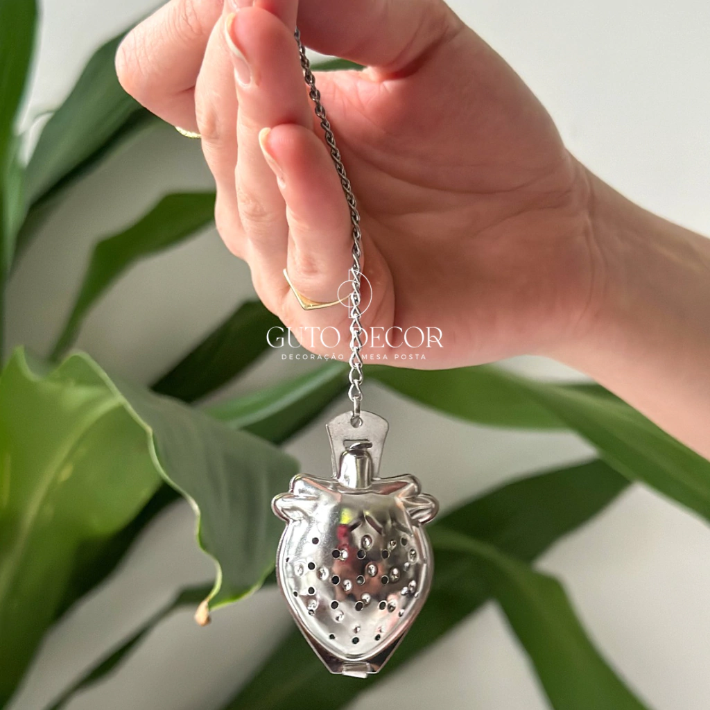 Modo de uso: inserir a erva escolhida no interior do infusor; coloque o infusor dentro da xícara com água fervente, encaixe a corrente na borda da xícara, aguarde aproximadamente 5 minutos e retire o infusor.