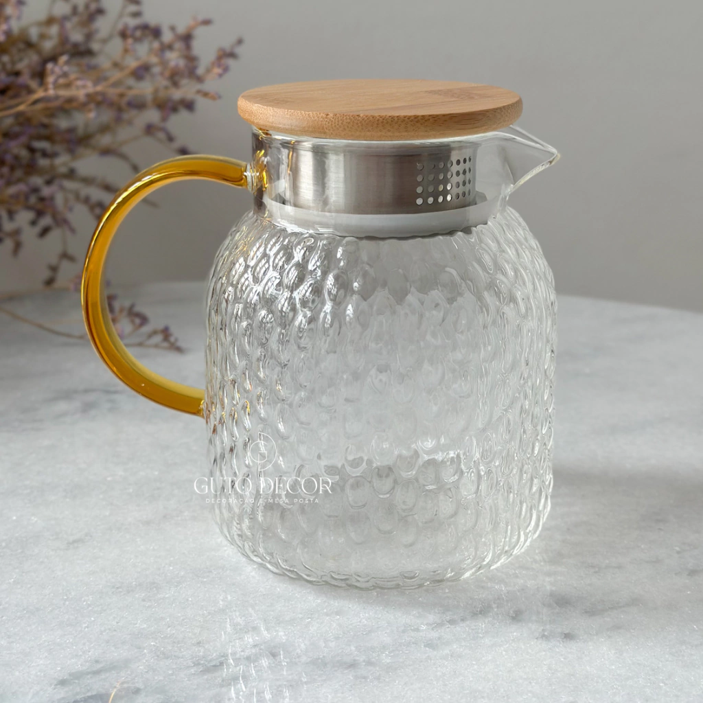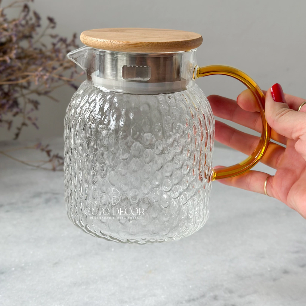 Material: jarra em vidro borossilicato, tampa de bambu e inox