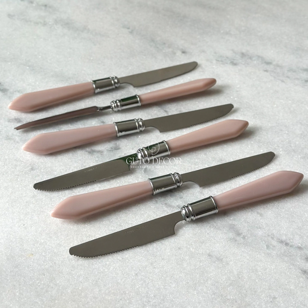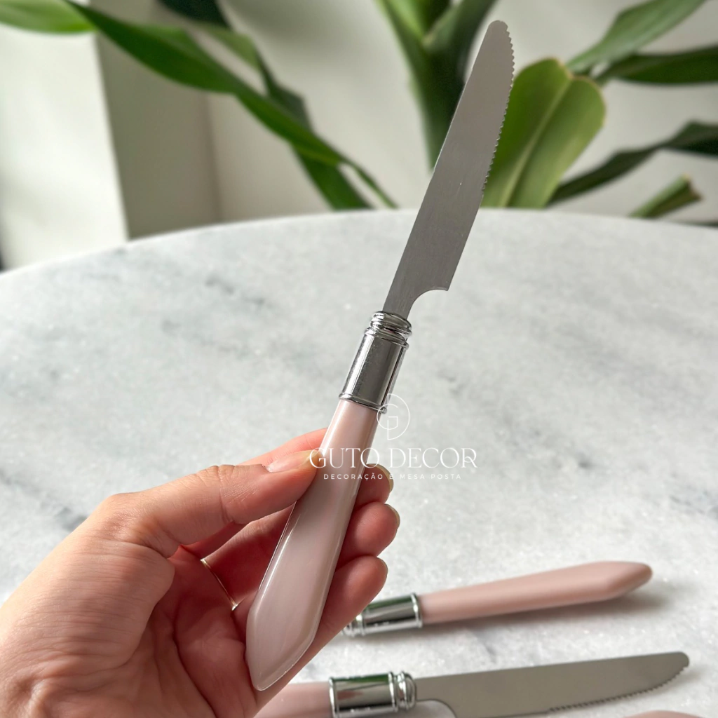 Jogo de Facas para Sobremesa em Aço Inox Mother Pearl Rosa 6 Peças 21,5cm