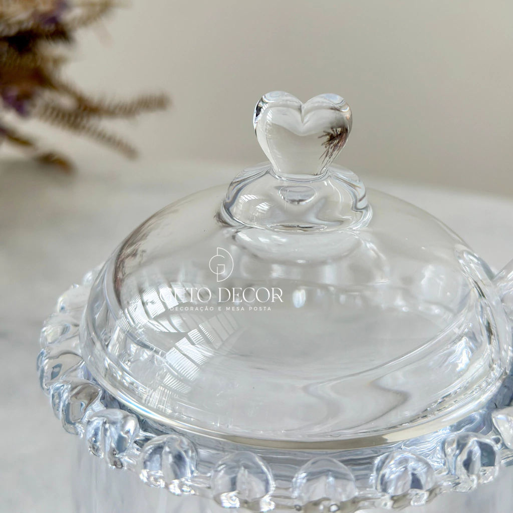 A Meleira Coração em Cristal com Pegador é a adição perfeita para sua mesa, trazendo um toque de charme e elegância.