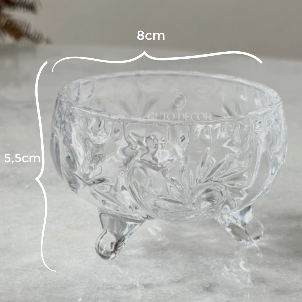 Seu design sofisticado em cristal e os pézinhos delicados trazem um toque de elegância e modernidade, ideal para qualquer ocasião. Use-o em festas, jantares ou no dia a dia para deixar tudo mais bonito! Aposte na versatilidade desse mini bowl e surpreenda seus convidados com estilo e praticidade!