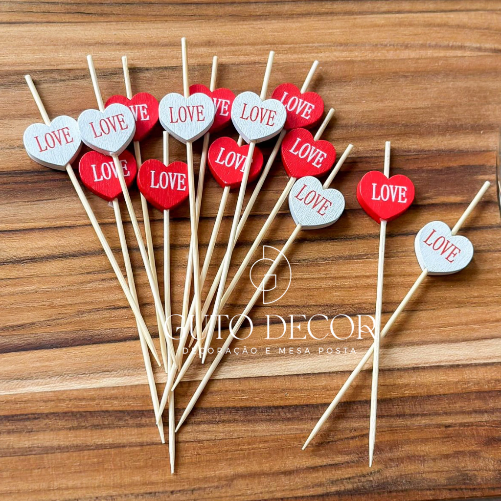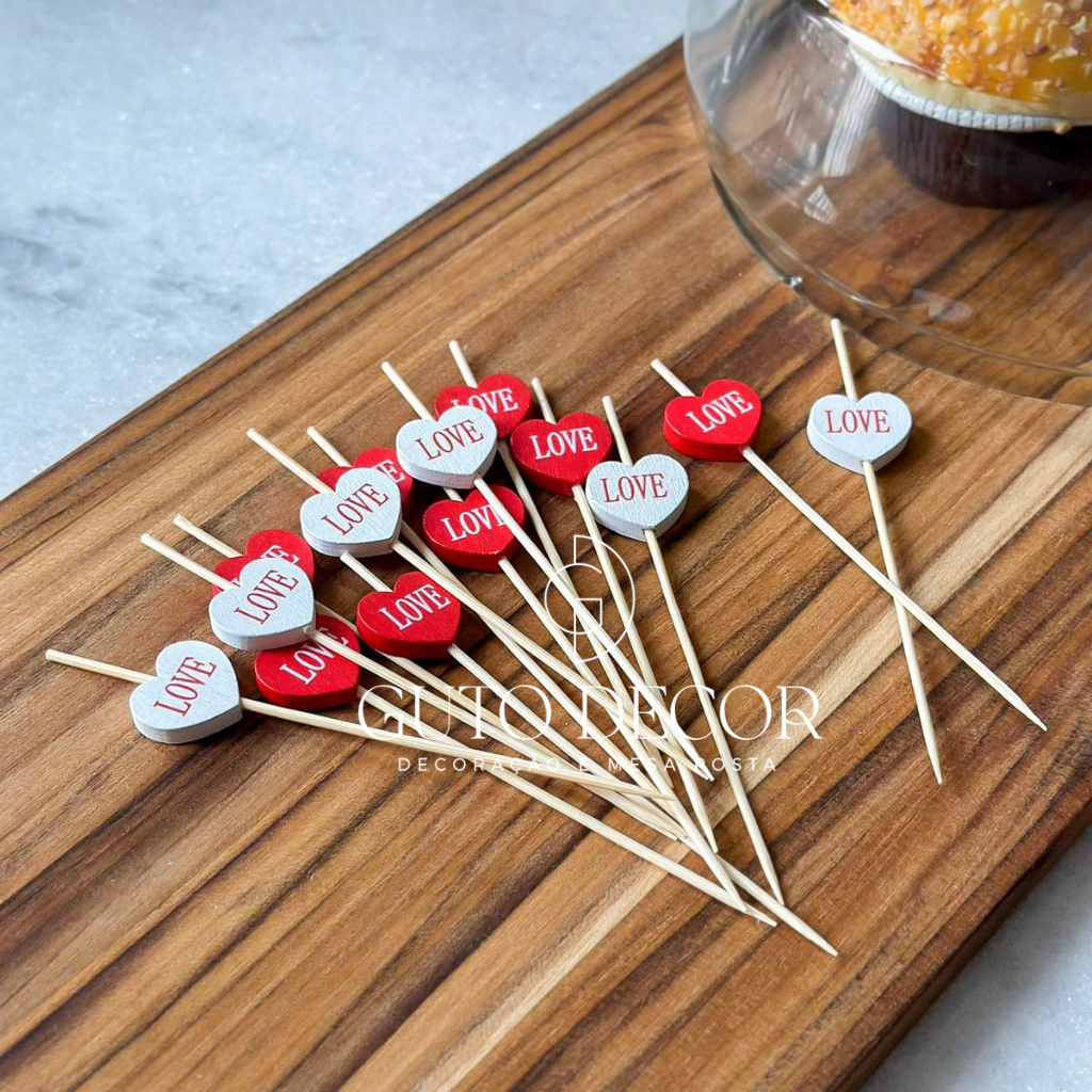 Palito para Petiscos em Bambu Love 12cm 50 Unidades