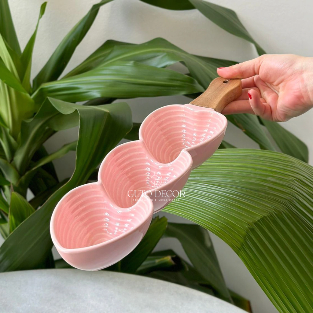 Petisqueira Provence Coração em Porcelana e Cabo em MDF 34cm