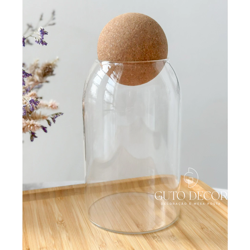 Pote de Vidro com Tampa Bola Cortiça M 20cm